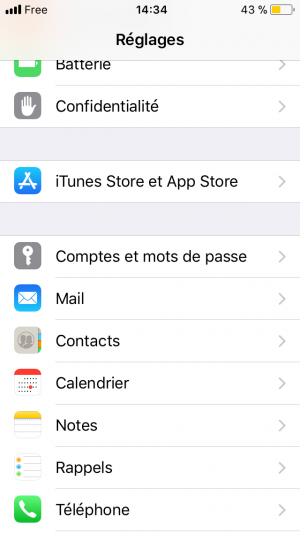 Dans la partie « Réglages » de l'Iphone, ouvrir l’onglet « Comptes et mot de passe »