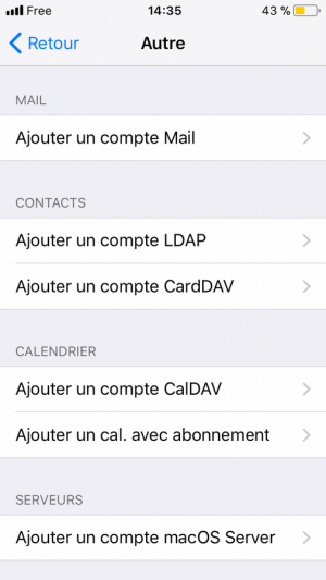 Puisque nous rencontrons de nombreux problèmes liés au protocole “Exchange”, nous recommandons d'utiliser les protocoles standards : CalDAV, CarDAV et IMAP pour éviter ces difficultés aléatoires en fonction des mises à jour d'Iphone de leur numéro de version etc…