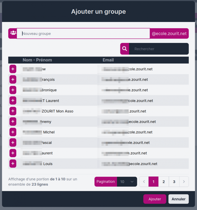 Créer un nom et choisissez les personnes à y associer avec “+” et cliquer sur Ajouter.