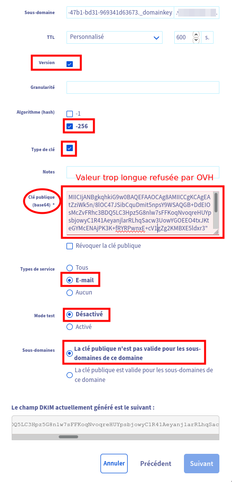 Attention, chez OVH, l'interface actuelle ne permet pas simplement de saisir la valeur demandée qui est trop longue.