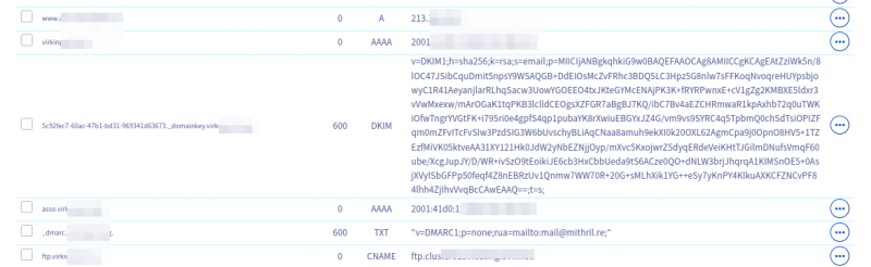 Si vous utilisez les listes de diffusion (avec le module sympa optionnel dans Zourit), il vous faut paramétrer 2 autres entrées DNS.