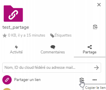 Il peut arriver que vous vouliez partager que pour un certain temps et ainsi éviter d’oublier de supprimer le partage. Partager par lien vous permettra de partager en spécifiant des droits, comme spécifier une date d’expiration…