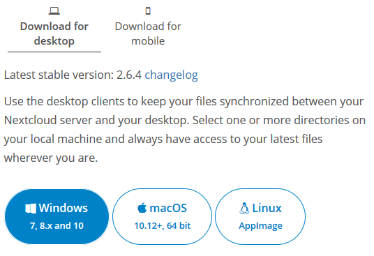 Allez sur le site de Nextcloud. Puis cliquez sur Download , et choisir Download for desktop, puis Nextcloud Files et choisir votre système