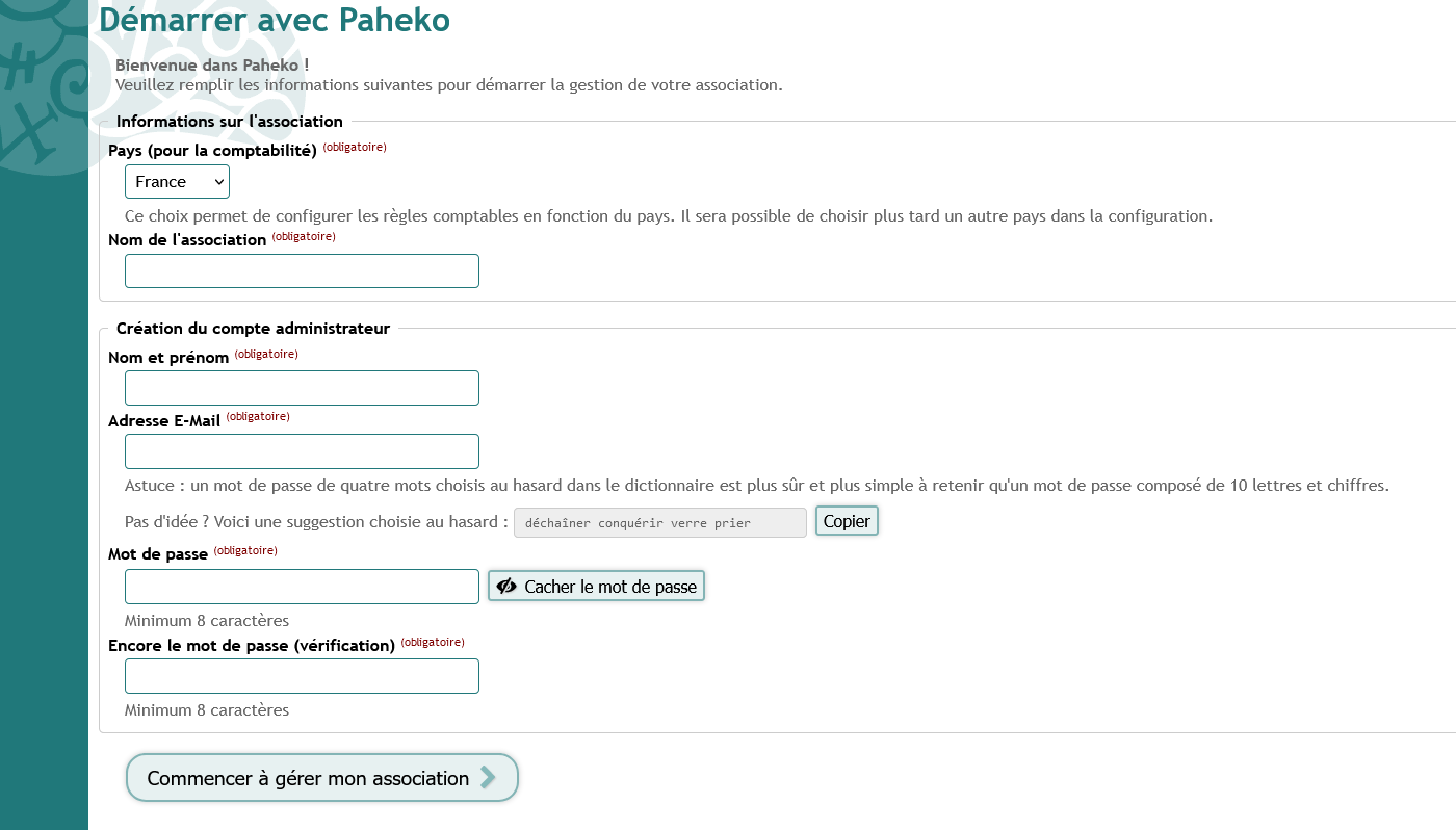 Vous devrez alors rentrer les informations requises, puis cliquer sur le bouton “Commencer à gérer mon association”.