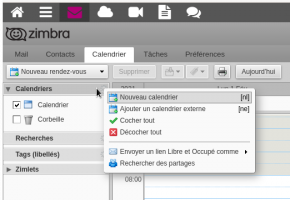 - Le calendrier “calendrier” ne peut pas être supprimé. Si des données ont été importés et que l'on souhaite finalement les supprimer, il faut procéder autrement qu'une simple suppression du calendrier qui serait opérationnel pour tout autre calendrier créé. Il faut afficher les rendez-vous en mode liste, sélectionner une plage de dates qui contient l'ensemble des rendez-vous, cocher tous les événements et supprimer. Le calendrier est alors vide.