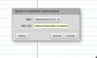 - Attention, si on donne l'url d'un ICS à un calendrier externe, il sera en lecture seule.