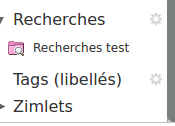 Vous retrouvez votre dossier dans la barre “Mail” à gauche de votre écran dans l'onglet “Recherches” (cf-ci dessous “Recherches test”).