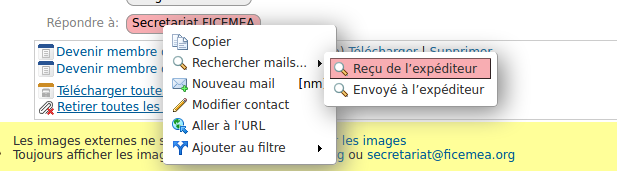 Il suffit de cliquer (droit) sur l'adresse mail du destinataire :