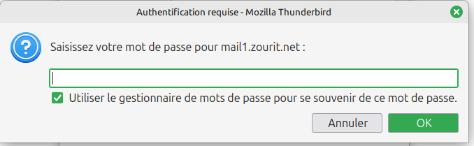 A la fenêtre suivante, il faut indiquer votre mot de passe Zourit.