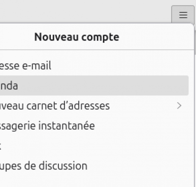 Dans Thunderbird / ouvrez le Menu à droite, puis choisir “Nouveau compte”, puis Nouveau carnet d'adresses , puis Carnet d'adresses Cardav.