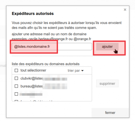 Ajouter un domaine de listes Sympa complet comme non spam pour Orange (pour toutes les listes)