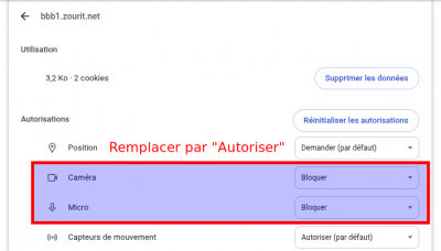 Pour modifier les autorisations (ici de bbb1.zourit.net), il faut choisir “Autoriser” au lieu de “Bloquer”.