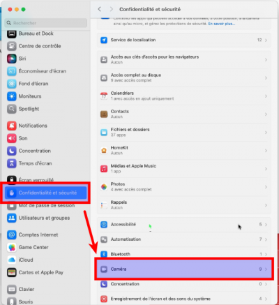 - Rendez-vous dans le menu de gauche sur “Confidentialité et Sécurité” (Privacy & Security)
