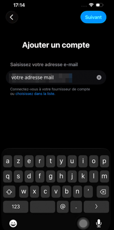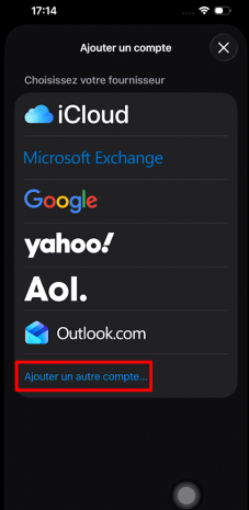 Dans iOS 26, cet écran est légèrement différent après « Ajouter un compte » :
