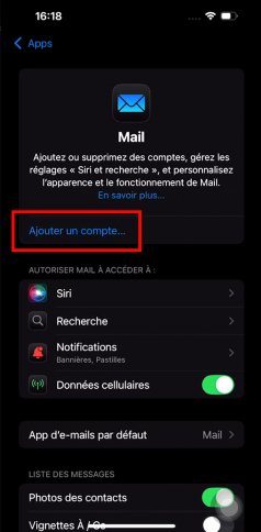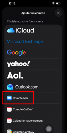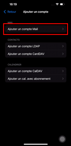 Cliquez sur « Ajouter un compte mail ».