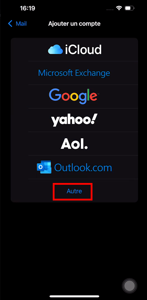 Vous êtes ici : accueil » utilisateurs » smartablet » mail_iphone : iphone_ajouter_compte_autre.png