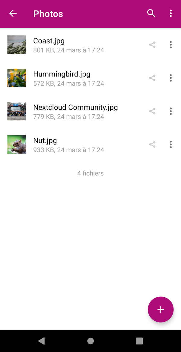 Média contient tous les fichiers de type images ou vidéos en vrac, avec une navigation aisée.