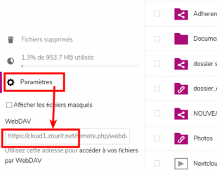Chaque domaine possède une adresse de cloud qui peut varier. Cliquer en bas à gauche dans “Paramètres” pour connaitre le nom de votre cloud associé à votre compte.