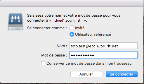 - Serveur: https://cloud1.zourit.net.... (l'adresse que vous avez copiée précédemment). Pour info, il convient d'enlever