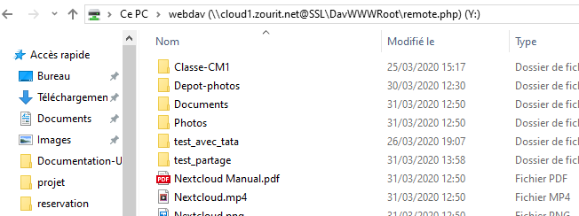 Maintenant vous avez fini, votre cloud est connecté en Webdav.