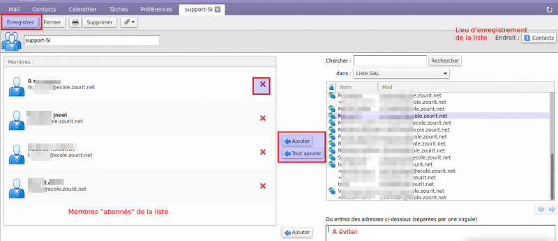- Liste GAL : ensemble des personnes de l'annuaire de votre domaine.