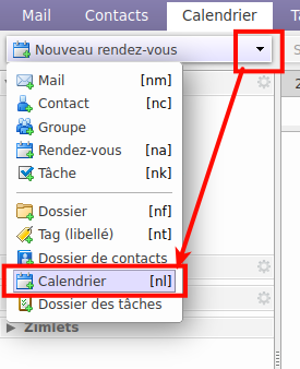 Déroulez le menu à droite de “Nouveau rendez-vous” et choisissez “Calendrier” plus bas.