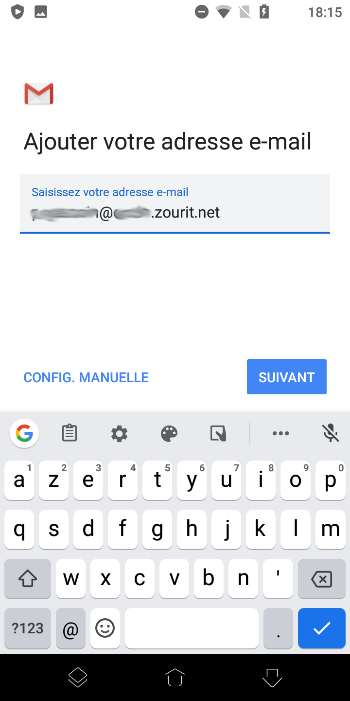 4) Ajouter votre adresse mail Zourit et choisir “configuration manuelle”.