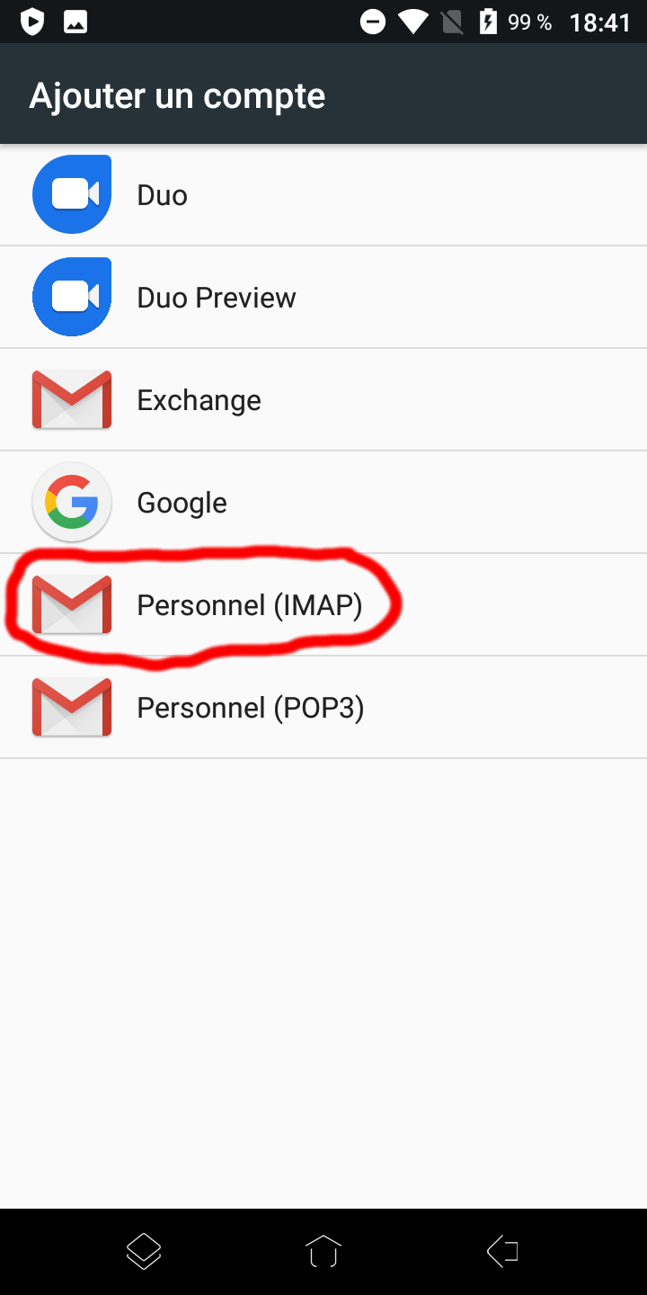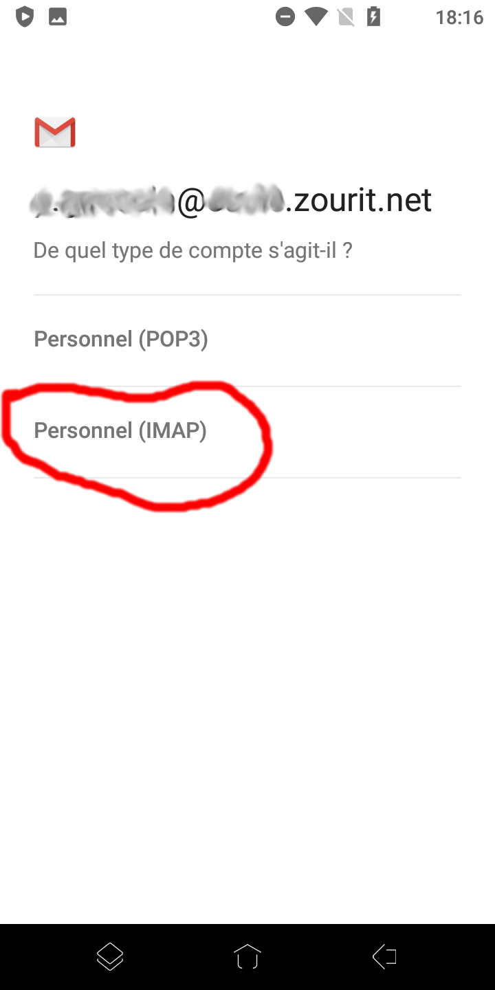 5) Indiquer à nouveau qu'il s'agit de “Personnel (IMAP)”.