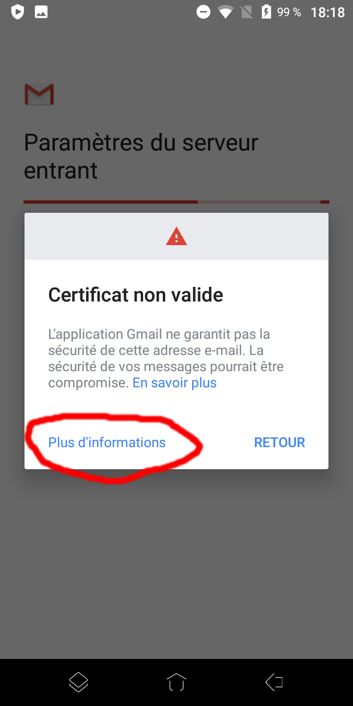 8) Ne pas tenir compte de l'alerte de sécurité et choisir : “Plus d'informations”.