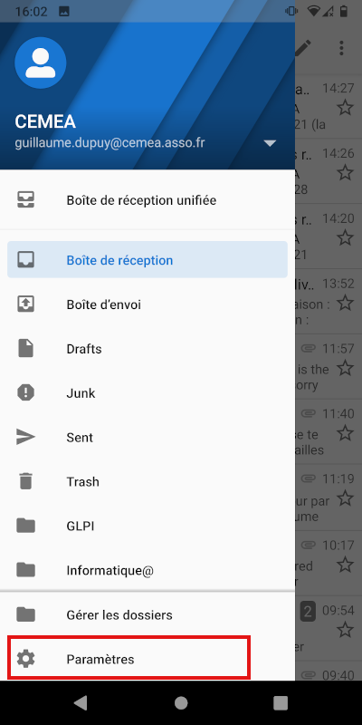 Vous avez désormais accès à vos mails sur votre téléphone :