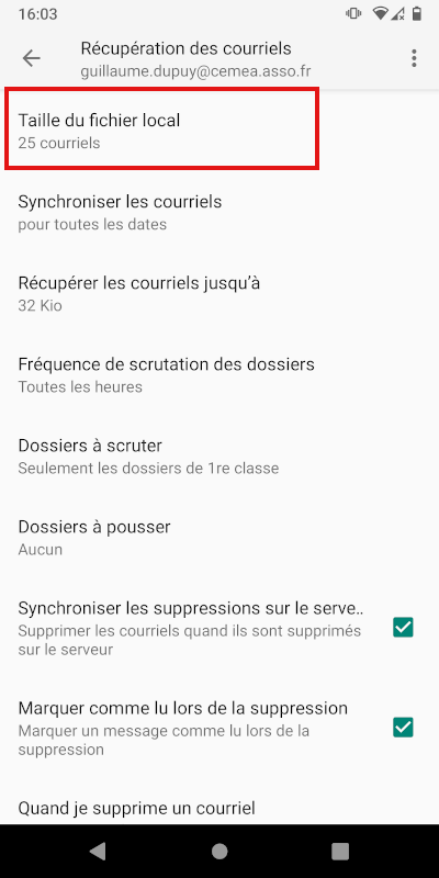 Choisir les mails stockés sur son téléphone