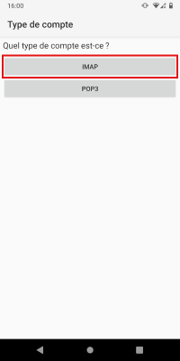 Sur le deuxième écran, choisissez IMAP :