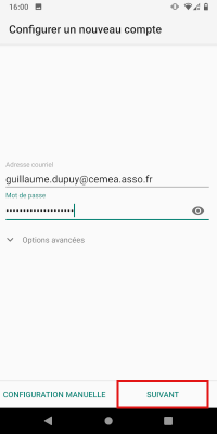 Il faut juste changer le serveur IMAP pour mail1.zourit.net (ou mail.cemea.org) , comme ceci, puis cliquez sur «Suivant» :