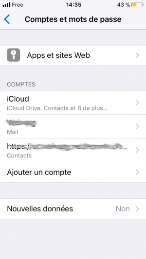 Dans la partie « Réglages » de l'Iphone, ouvrir l’onglet « Comptes et mot de passe »