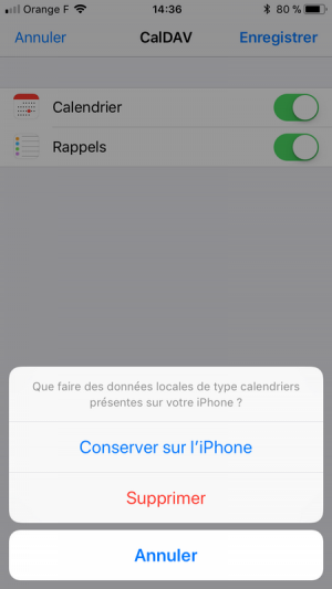 Cocher les cases qui vous concernent. En cliquant sur enregistrer, choisir « conserver sur l’Iphone ». Il ne vous reste plus qu’à choisir quels calendriers affichés.