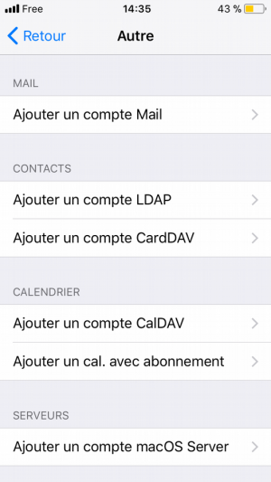 Nous choisirons cette fois « Ajouter un compte CarDAV » destiné à gérer les contacts.