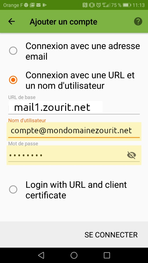 - Nom d’utilisateur : votre adresse mail Zourit